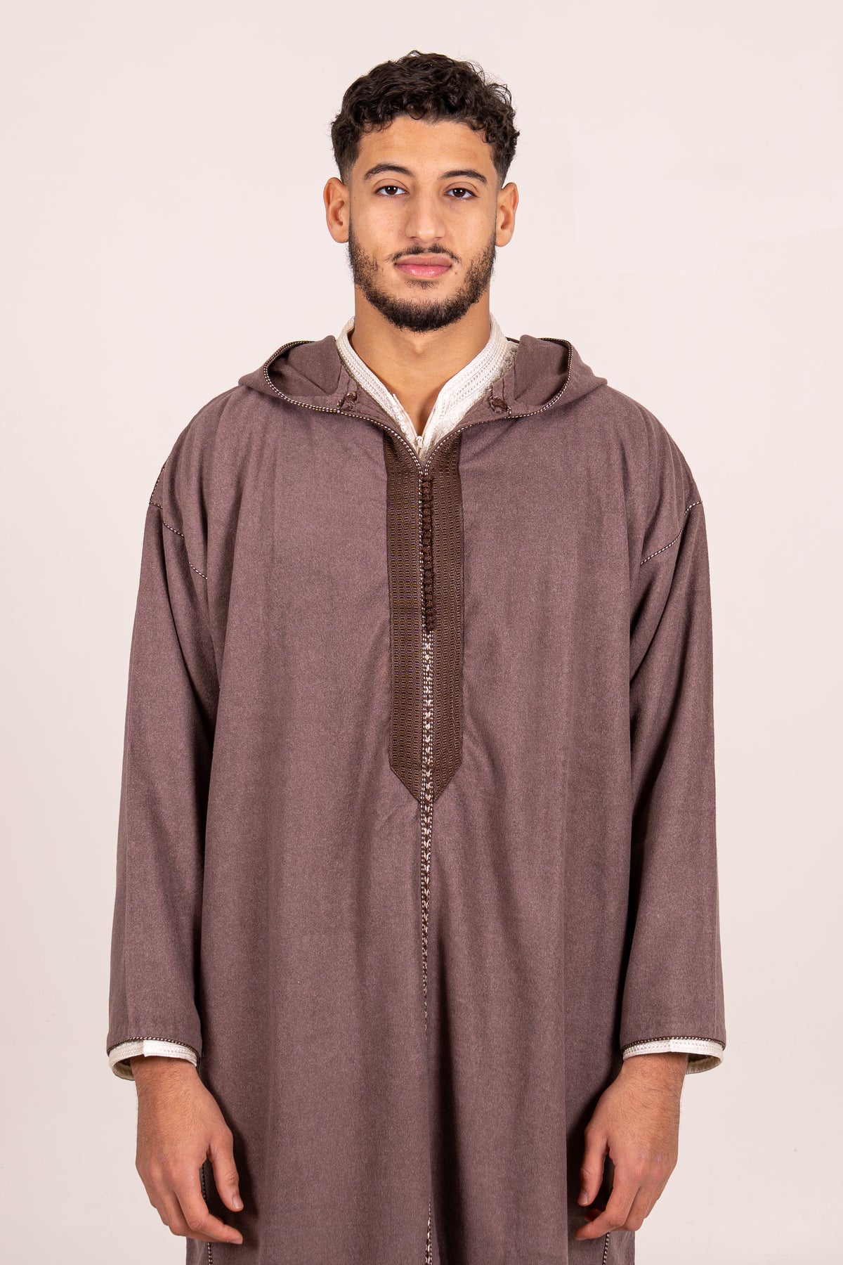 La couture semi-industrielle apporte une finition propre et renforce la durabilité de la djellaba. C’est l’équilibre parfait entre un rendu net et une tenue solide dans le temps, même en usage régulier.